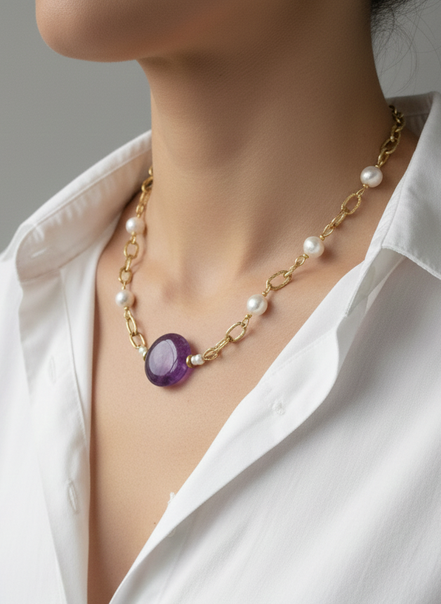 Perles de Culture : De véritables perles de culture d'eau douce sont insérées sur la chaîne pour apporter une touche de classicisme et de raffinement.