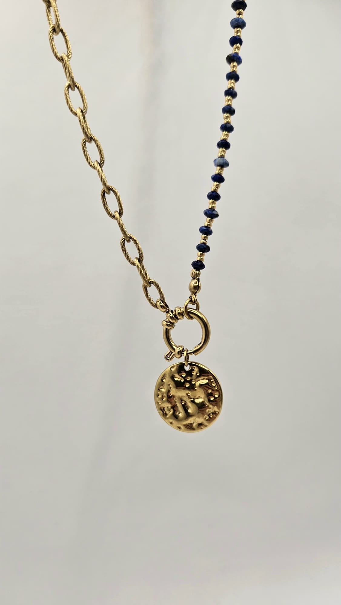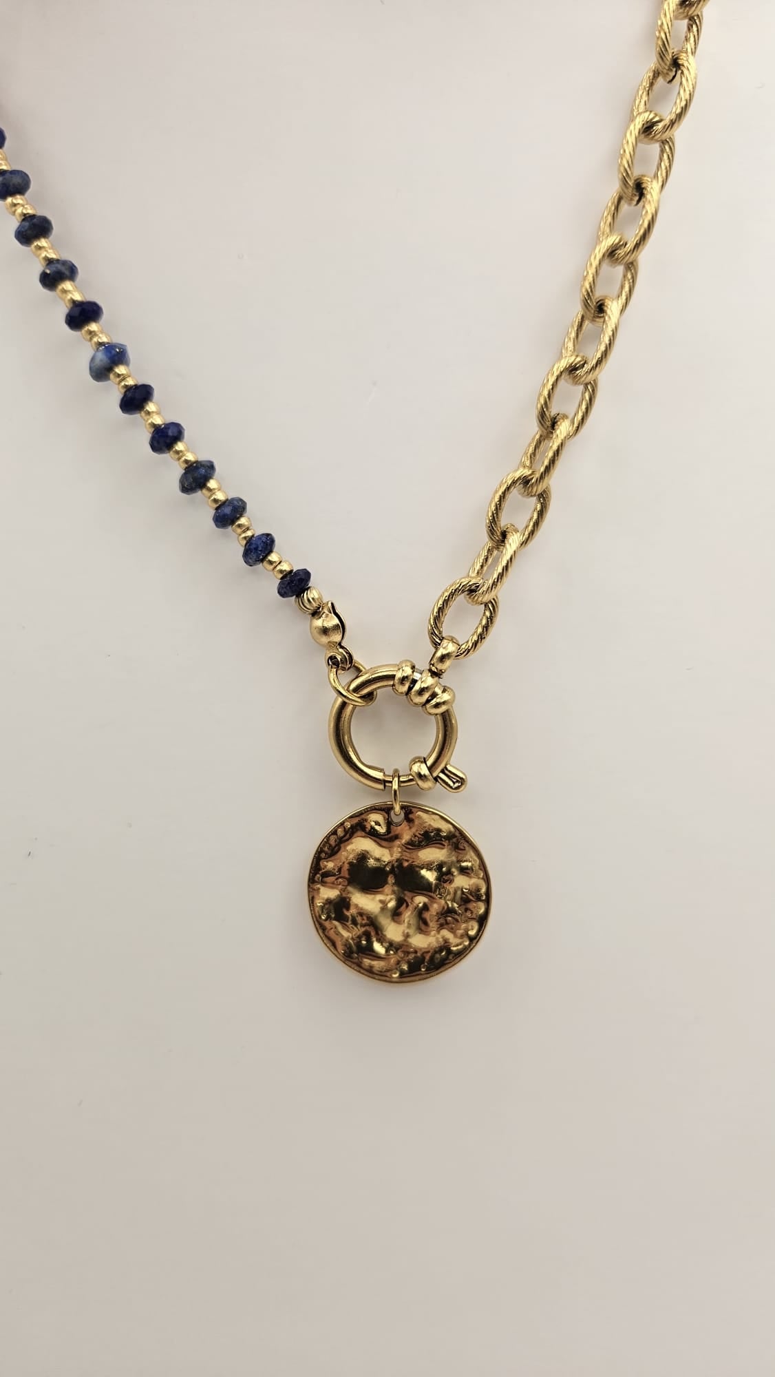 L’alliance du Lapis-Lazuli profond et de la chaîne dorée crée un équilibre parfait entre élégance lumineuse et modernité.