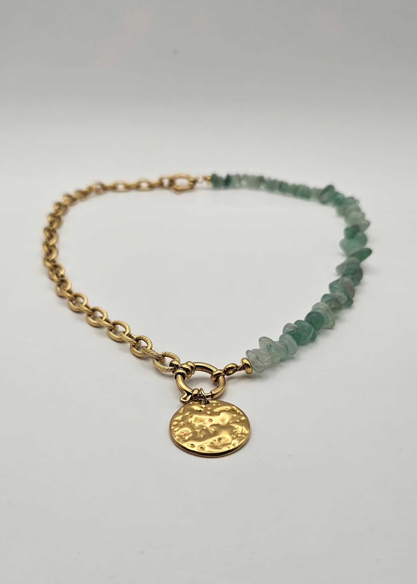 L’alliance de l’aventurine et de la chaîne crée un équilibre parfait entre douceur naturelle et modernité.