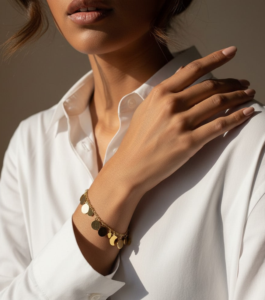 Brillez de mille feux avec sa couleur dorée éclatante. Sa longueur est a votre choix, en fonction de votre poignet (à vous de sélectionner !)