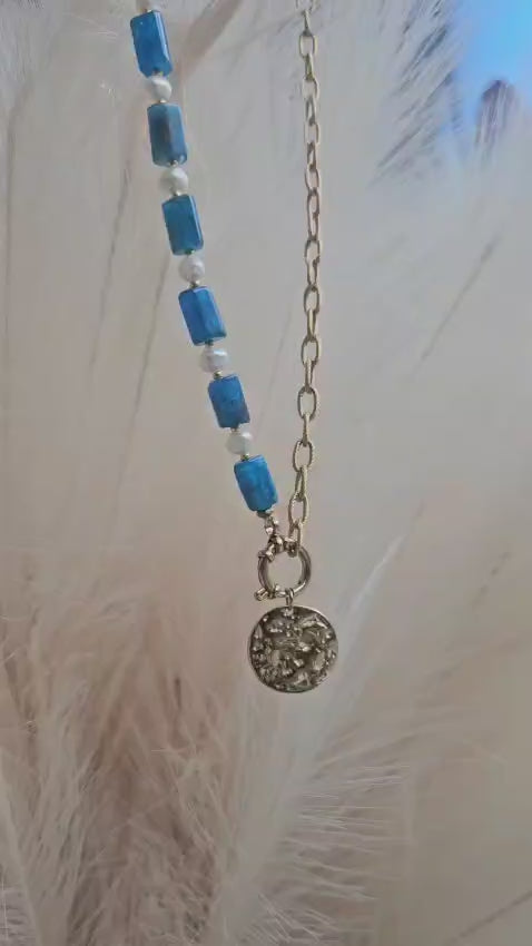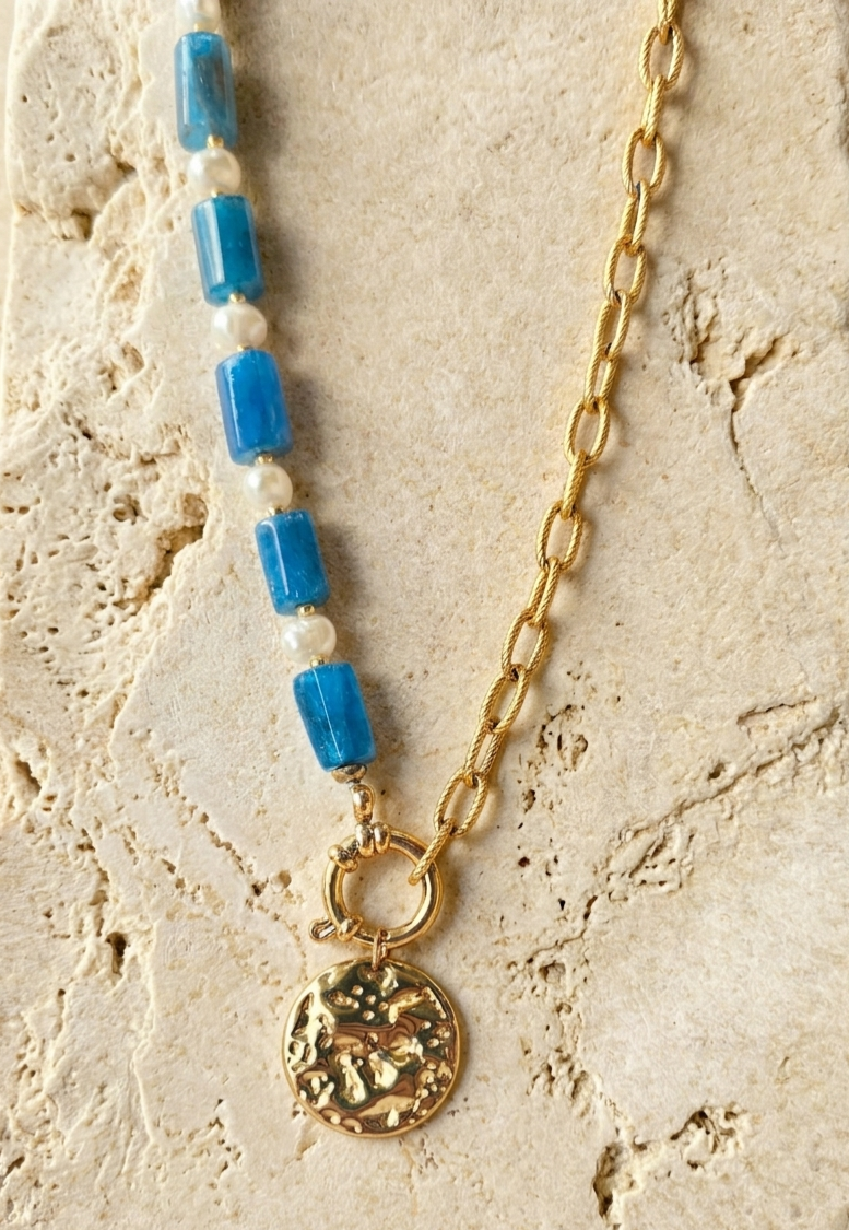 L’alliance de l'apatite de de son turquoise profond avec la chaîne dorée crée un rayon de lumière autour de votre cou pour un effet wahou.