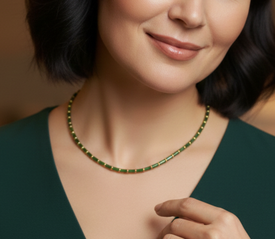 Perles de verre d'une magnifique couleur vert émeraude. Ces perles captent la lumière, offrant un éclat discret et sophistiqué.