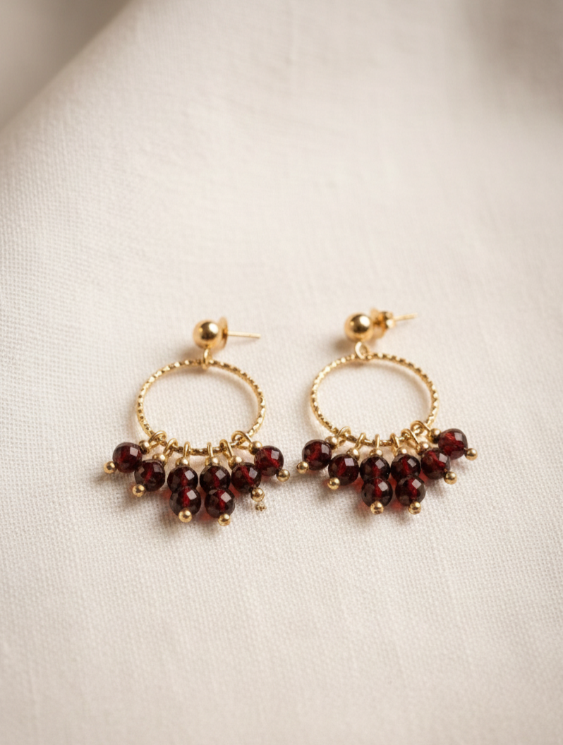 Boucles OLIA : l'éclat du Grenat Naturel
