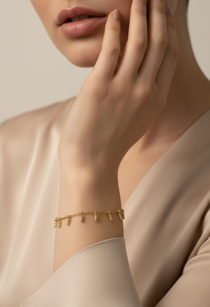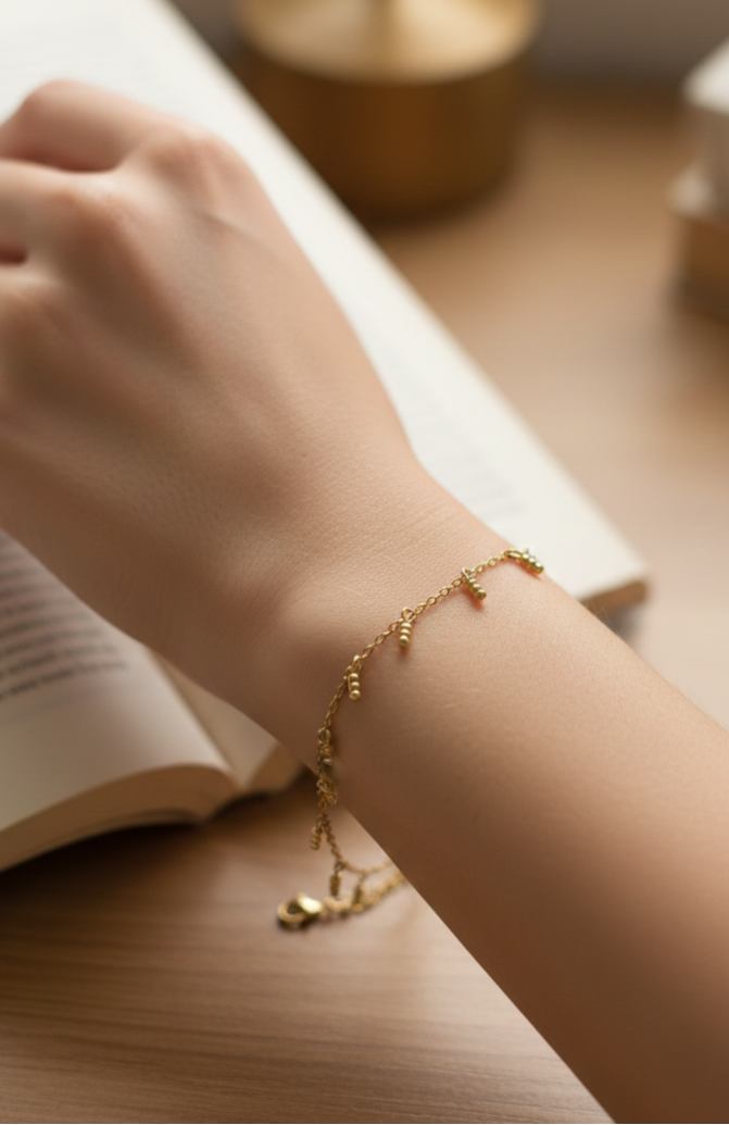 Ce magnifique bracelet est un bijou intemporel conçu pour sublimer un look. Son design délicat, composé d'une chaîne élégante et de petits maillons dorés scintillants, apportera une touche de raffinement à toutes vos tenues, qu'elles soient quotidiennes ou pour des occasions spéciales.